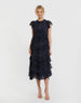 Navy High Neck Cap Sleeve Micro Ruffle Midi Dress